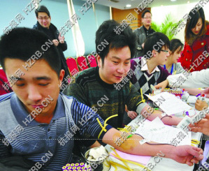 昨天,杭州某集团组织员工献血,报名者多达300人,但最终完成献血的只有约200人。