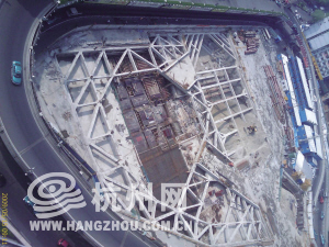 房间里都是泥,工人从上往下挖,每挖3到4米厚的泥,就用大约60厘米粗的钢管左右抵牢墙面,再挖,再用钢管顶住。挖到底后建楼板,和在地面上盖楼一样。一层楼板盖好,就把支撑这层的钢管拆掉。逐渐盖到顶,钢管也全部拆完了。