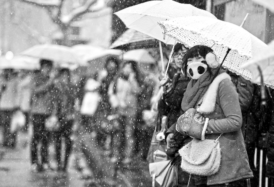 “真不该在下雪天出来购物,力不从心啊。”一手拎着一大袋的东西,一手撑着伞,黄小姐摇摇晃晃地从庆春路联华超市走出来。