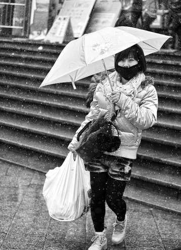 “我已经又戴围巾、又戴口罩了,还是冷得不行,路上还这么滑,今天出来买东西真是失策。我已经在前门等了二十多分钟了,不是看不到空车,就是抢不过别人。现在只好到后面的小路里去看看能不能打到车。估计最后得走回家去了。”