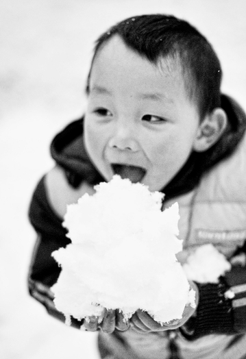 “小孩子见到雪就很开心,玩多久也不不觉得累,手冻得红彤彤也不觉得难受。”