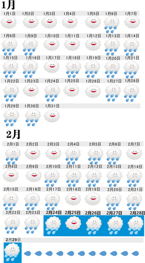 注意哦,“笑脸”只是表示没下雨,并不是一定出太阳,这其中还有很大一部分是阴天。