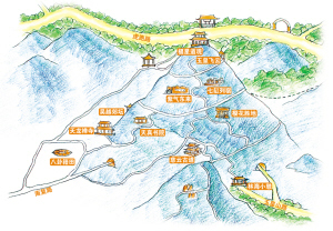 第一条:排衙石林—圣果禅寺—月岩望月—栖云古刹—梵天讲寺—南宋皇城遗址。