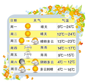 本周的天气就是这样。前半周暖意融融,后半周因为暖湿气流和冷空气先后影响,不仅要下雨,气温也会跟着下降。