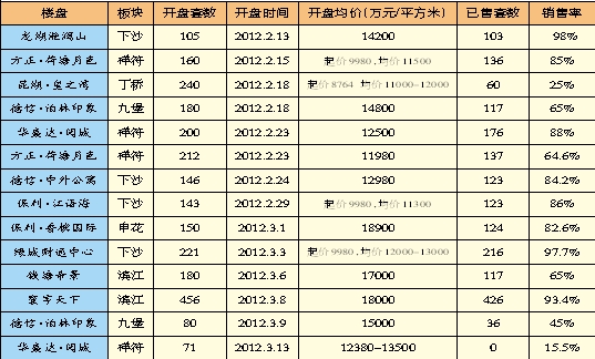 2012年2月-3月杭州降价楼盘实际成交情况一览表