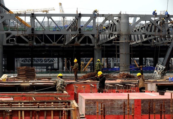 这是正在建设中的杭州铁路东站枢纽工程,工人们在加紧施工(3月29日摄)。