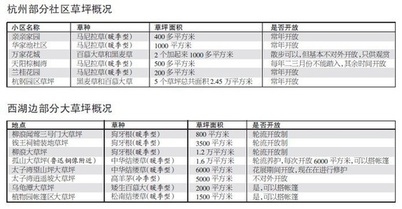 杭州的居民小区种的多数是暖季型草,而冷季型草大多种在西湖边。市园文局绿化处副调研员樊丽娟说,绿化设计时,他们都会建议多种暖季型草,方便市民到草地上玩。