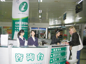 有一位香港游客曾在自己的微博上称赞杭州的旅游咨询服务是内地最好的。他在萧山机场的咨询点了解杭州的基本状况,那儿有免费的杭州英文地图,工作人员流利地用英语跟他交流,并帮他免费订好房间。如此周到细致的服务,让他乐意为杭州旅游做宣传。