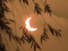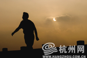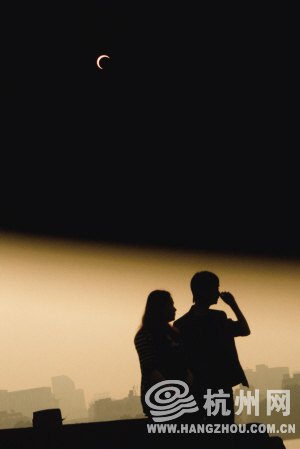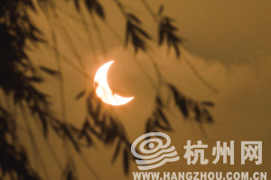 没有拍到照片的读者都觉得很遗憾。6点47分,金先生来电说:“今天的太阳怎么是月牙形的?是不是有什么天象?”金先生当时正开着车,行驶在天目山路上,他说:“挡风玻璃没有投进光来,我探头一看,咦,月亮怎么在东面?后来反应过来,是日食现象,可惜在开车,没拍照。一直等我开到古荡,才见到完整的太阳。”