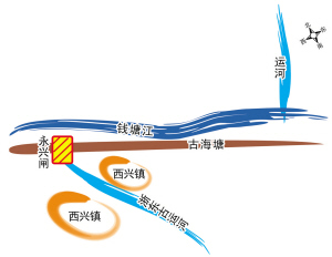 永兴闸遗址。当年连通浙东古运河和钱塘江,不通船,主要用来调节古运河的水位高低和水质。