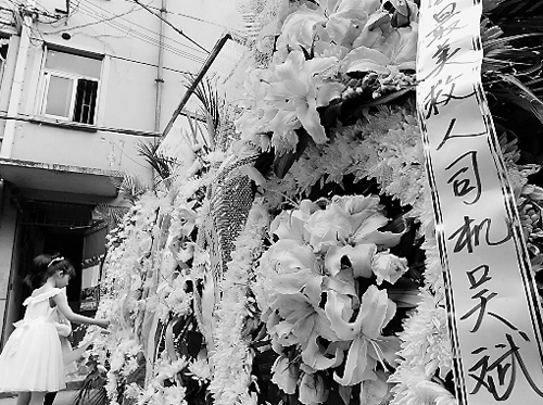 昨天下午1点多,查先生一家七人专门从上海驱车赶到杭州来吊唁吴斌。他们还带来了花圈。