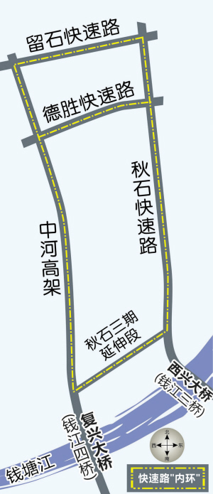 秋石三期延伸段建成后,杭州主城区将有第一个快速路内环。