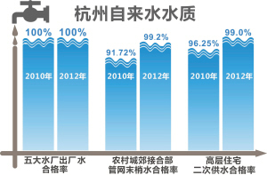 2011年,杭州水务集团下属的南星、九溪、祥符、清泰四家水厂,出厂水水质新国标合格率全部为100%。