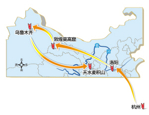 7月10日—22日,上海至洛阳,途经西安、吐鲁番、乌鲁木齐、柳园、嘉峪关等地;