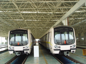 地铁2号线一期工程共有27列162辆,每列采用4动2拖6辆编组。也就是说,每一列地铁,共有6节车厢,其中4节车厢安装动力装置。