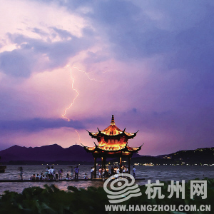 到了晚上八点左右,伴随着隐约的雷声,一道道闪电撕裂天空,让原本暗沉的天空变得诡异。杭州市气象台发布了雷电黄色预警信号。