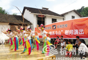 6月30日,杭州最高气温36.8℃。当天下午,临安西南部海拔650米的潜川镇马山村操场上,一台由都市快报和杭州艺术学校联合举办的慰问演出正在举行。