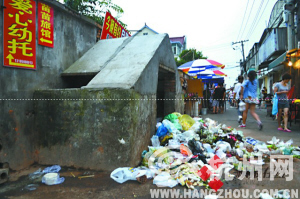 昨天上午,记者遇到了一位拿着一只炒锅的市民。他告诉记者,他是转塘新村的老居民了,他对目前这种“脏乱差”的状况表示很无奈。“现在是夏天,天气热,垃圾多又臭。”除了小摊贩乱扔垃圾外,在这条小吃街的左右两侧,还有两个露天的垃圾堆。南边的垃圾堆旁,其实就是一个大型的垃圾箱,但是不知道为何原因,人们还是不愿意将垃圾投进里面去。