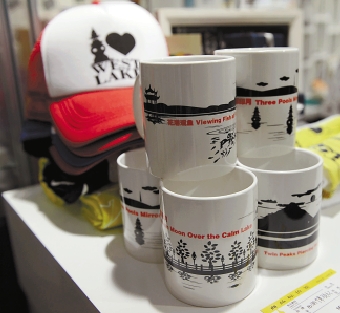 荷花样式的青瓷小茶杯、印着镂空雷峰塔的扇子、三潭印月鼠标和鼠标垫……“卖得好一点的是扇子、明信片、创意T恤、西湖书籍。”西湖博物馆工作人员说,这里的东西很有设计感,往往台湾、香港的游客很喜欢。