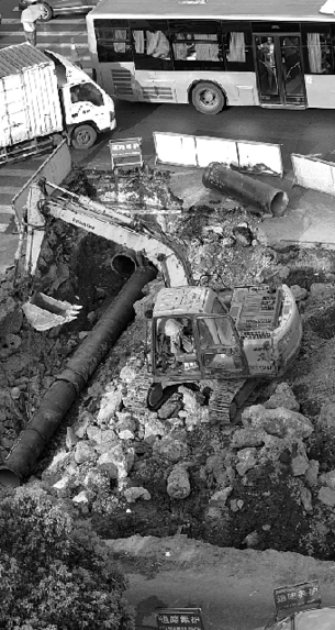 昨天上午,记者在现场也看到了水业集团的抢修人员,对方表示这次破裂的水管是上世纪80年代埋下的混凝土水管,口径在600毫米,周边一带住户短时间将出现降压供水,不过他们会抓紧抢修,确保晚上恢复正常供水。