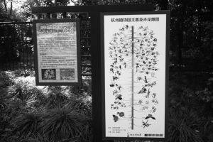现在杭州植物园把这幅画,做成大展示牌,挂到了植物园南门门口。以后到植物园里赏花,到了门口,先从百花谱上找找当下时令的花,再进园子去找,更有意思。