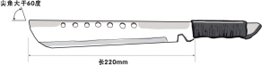 5.其他刀尖角度大于60度,刀身长度超过220毫米的各类单刃、双刃和多刃刀具(图五)。