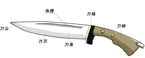 1.匕首:带有刀柄、刀格和血槽,刀尖角度小于60度的单刃、双刃或多刃尖刀(图一)。