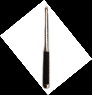 甩棍:棍柄为橡胶质地,棍身是坚硬的金属材质,具有很强的攻击性。甩棍收缩后的长度一般在20厘米左右,甩出后可达45厘米左右。