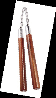 双节棍:有木质、金属、橡胶等质地,卖这类商品的卖家在介绍产品时会说“此器具具有很强杀伤力,切勿对人进行攻击”。
