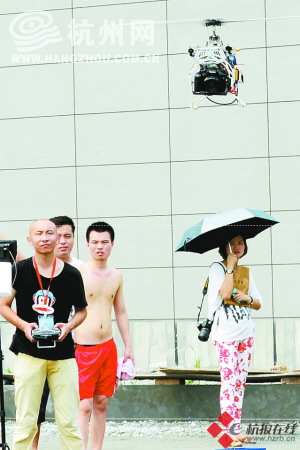 记者的航拍飞机吸引了很多人的目光。韩丹 李忠 摄