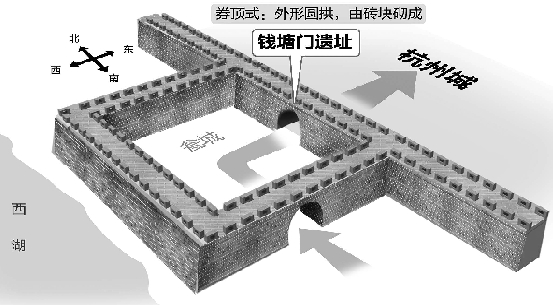 “通过查阅古文献考证等,我们判断钱塘门的式样是‘券顶式’。”杭州市考古所所长唐俊杰说。