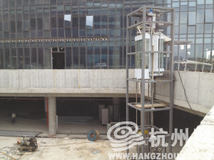 从艮山东路备塘路口进去一直走,七堡站就位于七堡车辆段及综合基地南侧,为地下两层岛式车站,车站总长161米,共设4个出入口。其中位于地铁控制中心旁的出入口是一个下沉式广场,通过40多级台阶到地下一层。广场一侧还设置了无障碍电梯,已经搭建好了框架。
