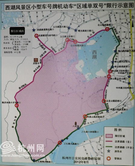 具体的限行范围比以往有所缩小,主要为灵溪隧道马家坞路口、玉古路玉泉路口、北山街曙光路口、北山街保俶路口、南山路万松岭路口、南山路玉皇山路口、玉皇山隧道南口、凤凰山路虎跑路口、之江路九溪路口、梅灵南路小牙坞路口等10个路口,以及与上述路口连接道路围合的西湖风景区内所有道路。
