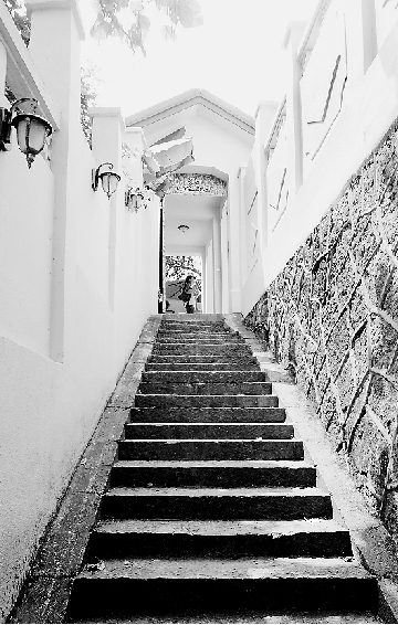 前天,记者沿北山街一路寻去,找到了门牌号为保俶塔前山路1号的润庐。黑底涂金的欧式大门半掩着,透过门缝,可以看到高高的台阶。
