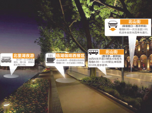 北山街从断桥到香格里拉饭店这一段,是新打造的户外夜间休闲景观区,临湖的一面街上,走上一段就有几张桌椅,可以让你坐下来,喝杯咖啡、吃个西餐。这些咖啡和西餐,由原本就开在北山路沿街的咖啡馆提供,相信你以前也去那些店里光顾过,以后就更多了绝好的就餐位置。