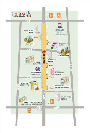 凤起路站是成熟的商业中心,市中心最繁华的地段,周边的配套杭州人都非常熟悉。延安路沿线的商家自不必说,B出入口就在浙江饭店和天香楼门口,设有2个进出通道。从B口出地铁站沿着孩儿巷走上200多米,就能来到武林路商业街,F出入口旁边是米兰假日酒店。A出入口往北走上3分钟左右就是武林银泰和杭州百货大楼。