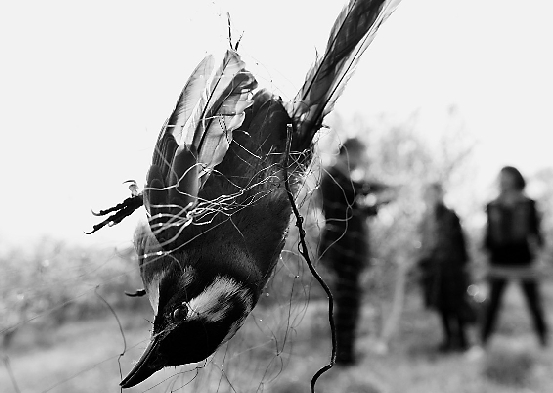 被尼龙网网住的鸟儿。(资料图片)