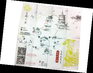 有声纸巾什么样?它的质地和一般手帕纸无异,只是在其中一面,印上了一幅水墨画,雷峰塔、夕照亭、妙音台,还有停车场、洗手间、公交站——原来,是一张雷峰塔景区图。