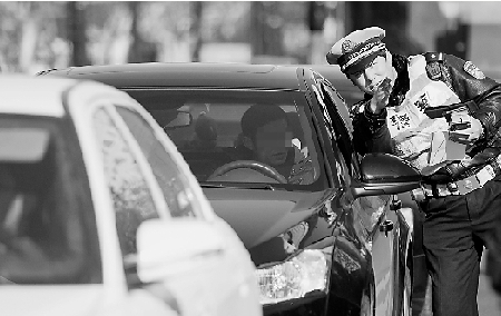 昨天,杭州交警在市区多处设卡,严查闯黄灯、不系安全带、开车打电话等交通违法行为。本报记者 李震宇 摄
