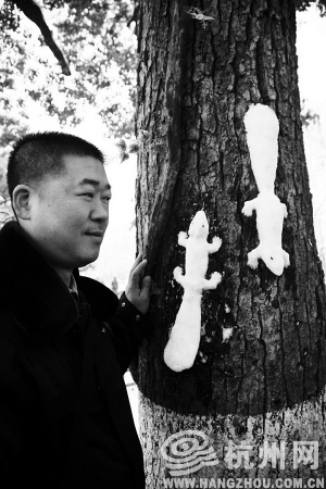 这位姚先生平时经常来湖滨公园游玩,也非常喜欢松鼠。下雪了,好多天没有见到松鼠,他非常想念它们,于是凭借着自己的美术功底,他花了2个多小时,用雪做成了两只逼真的松鼠。