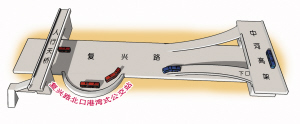 不过,这个名为“复兴路北口”的公交车站离中河高架复兴路下匝口实在太近,仅100多米的距离,导致早晚高峰这一带经常堵车。为什么呢?很简单,公交车排着队进站,高架上车子就下不来了,也跟着排队。