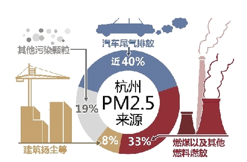 杭州PM2.5颗粒4成来自机动车尾气,3成来自燃料燃放