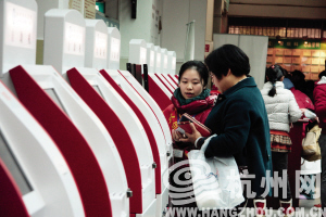 1月18日,夏女士到市中医院去看望一个病人,走进门诊大厅,被一排红白相间的机器吸引住了,旁边有个易拉宝上写着“诊间付费,免排队 赶紧开通市民卡‘智慧医疗’吧”。