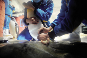 在野外,企鹅的指甲可没法子疯长到那么长。“一般也就2厘米长吧。”王启发说,这和人工饲养的环境有关。在野外的生存环境中,王企鹅的指甲在捕食、躲避天敌、迁移等过程中,通过在冰雪上的磨损,保持着适宜的长度。而在人工饲养环境下,一方面,为保护王企鹅的大脚,地面比较光滑;另一方面,没有与天敌的斗争,直接获得食物,运动量少,指甲几乎没有磨损。