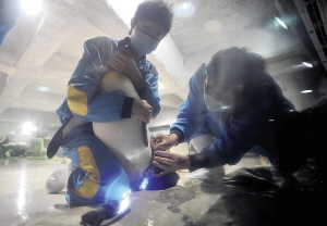 若是再不修一下,王企鹅还要遭更多罪。“过长的指甲在行动过程中容易造成折断,进而出血、感染等,影响王企鹅的健康。”所以,极地海洋公园工作人员决定给王企鹅美美甲。