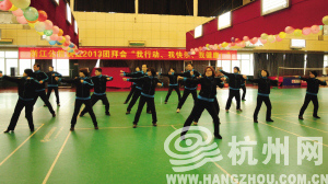 小徐说,这次团拜会主要以广播体操比赛和诗歌、散文朗诵为主,中间穿插了拔河、踩气球等趣味游戏。
