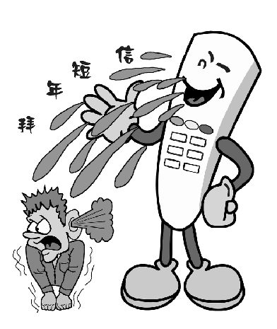 群发“拜年”短信让许多人不堪其扰。漫画 王华斌