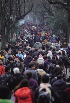 正月初三,苏堤上,游客多。记者 许康平 摄