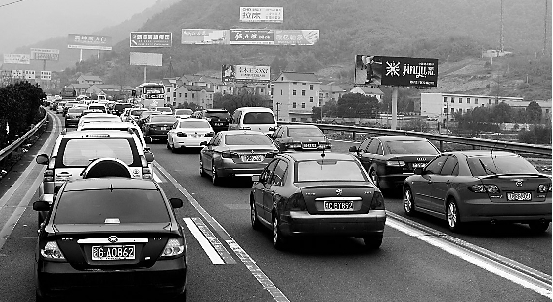 昨天,杭金衢高速上的塞车现象。记者 潘良干 摄