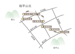 沿着东湖路一直往北,在星光街路口左拐,向西行驶,约十分钟时间,就可以到达探访临平楼盘的第四站——临平山北。